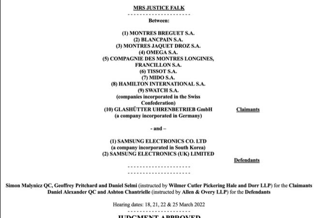 Simon Malynicz KC, Geoffrey Pritchard and Daniel Selmi acted for The Swatch Group in their case against Samsung, who were found liable for third party…